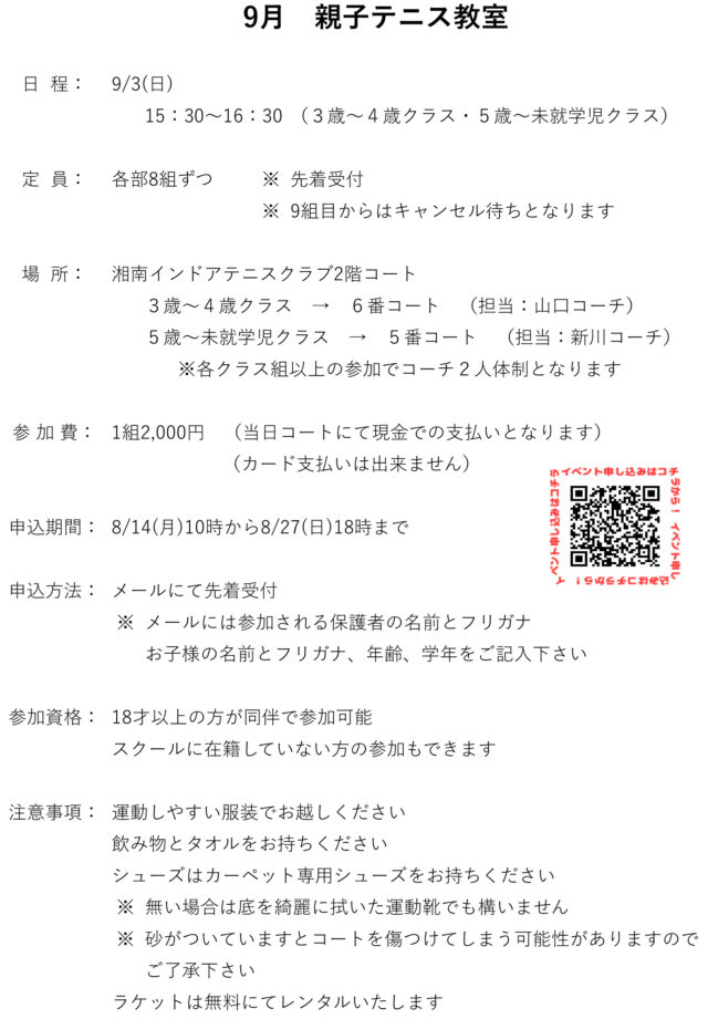 9月・親子テニス教室