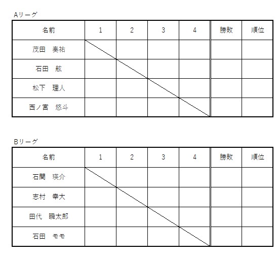 今回は8名参加の2リーグ制の為