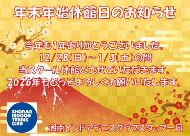 年末年始休館日のお知らせ
